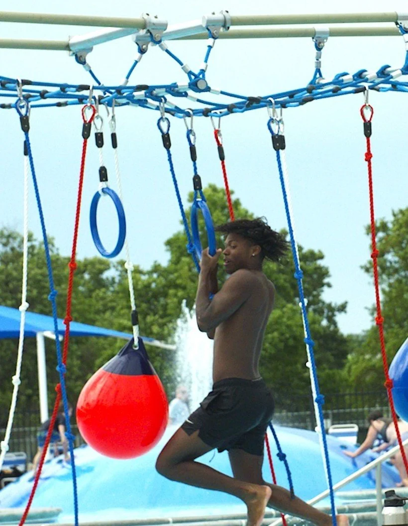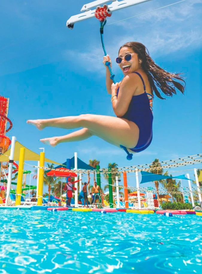 Where zip-line meets rope swing. A thrilling new way to launch into the pool!